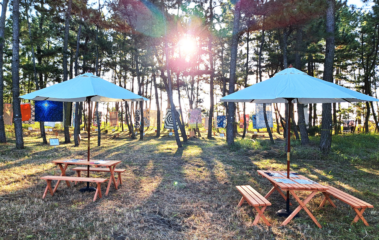 今年も「潮風のキルト展」の審査を担当させていただきました、Patch-Work-Lifeです。私たちは2016年からこの砂浜で審査を続けていますが、風の匂いも、光の色も、作品との出会い方も、毎年少しずつ違います。同じ場所に立ちながらも、いつも新しい発見があります。